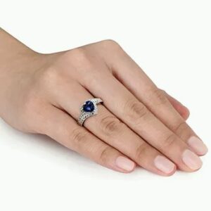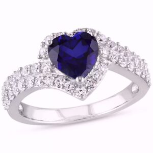 Absolute enchantment. A heart-shaped blue sapphire is caught up in a swirl white sapphires in this sparkling silver ring.