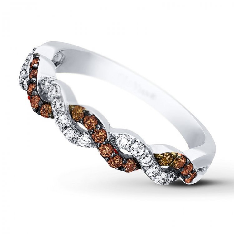 Please note: This ring is available in limited sizes. If you dont see your size here, please visit a store to order your ring. Ribbons of Chocolate Diamonds and Vanilla Diamonds intertwine in this luscious ring for her. Crafted of 14K Vanilla Gold, the ring has a total diamond weight of 3/8 carat. Discover the Legend.